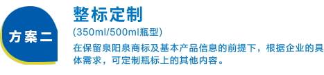 兩種定制方案靈活可選,為您量身定做企業(yè)專屬的長(zhǎng)白山天然礦泉水,展現(xiàn)企業(yè)個(gè)性,彰顯企業(yè)文化,提升企業(yè)形象,助力商務(wù)成功!